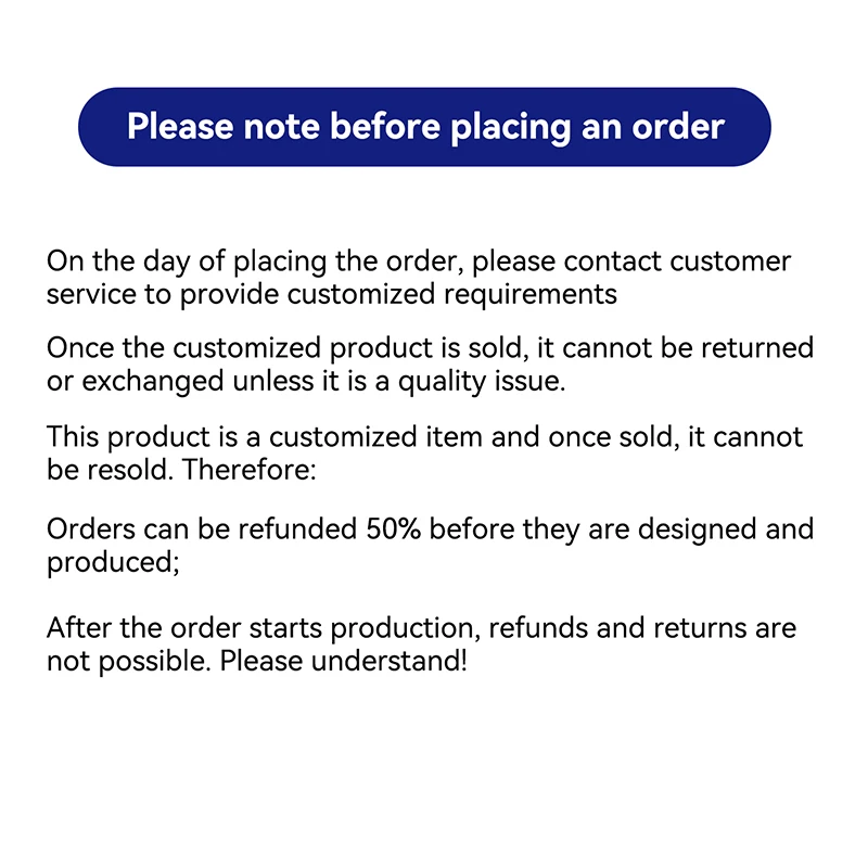 CUSTOM PROCESS - When placing an order, contact us directly by email, we will provide you with detailed customization services, send us your photo, we will send you the design drawing as soon as possible, after your confirm, we start production and delivery.